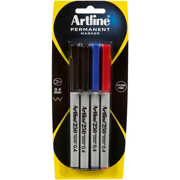 ARTLINE 250 PERMANENT MARKER BULLET 0.4MM ASSORTED PACK 4