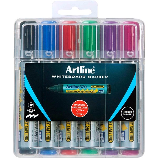 ARTLINE 579 WHITEBOARD MARKER CHISEL 5MM ASSORTED HARD CASE PACK 6
