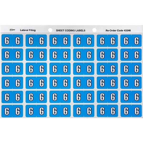 AVERY 43346 LATERAL FILE LABEL SIDE TAB YEAR CODE 6 25 X 38MM BLUE PACK 180