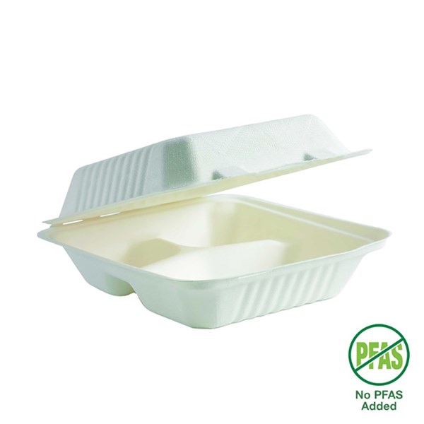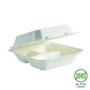 BIOPAK BIOCANE PLANT FIBRE CLAMSHELL WITH 3-COMPARTMENTS 200 X 220 X 80MM WHITE PACK 100