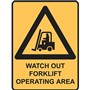 BRADY WARNING SIGN WATCH OUT FORKLIFT OPERATING AREA 450 X 300MM POLYPROPYLENE