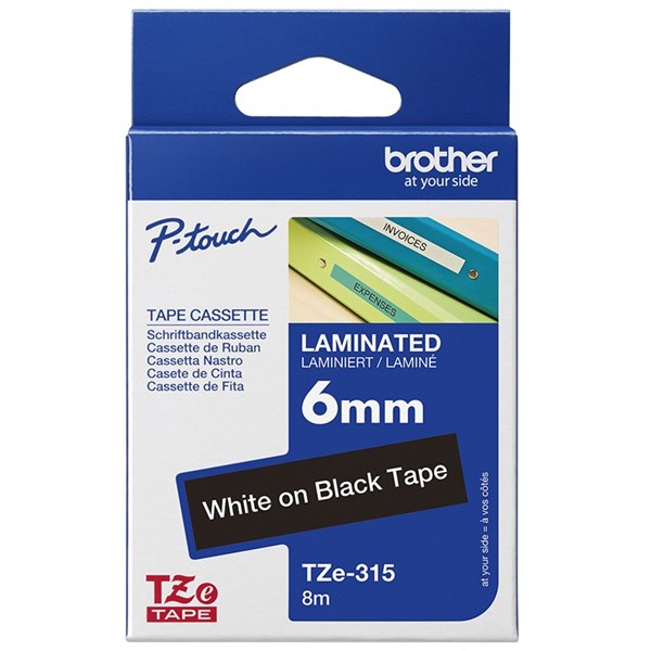 BROTHER TZE-315 LAMINATED LABELLING TAPE 6MM WHITE ON BLACK