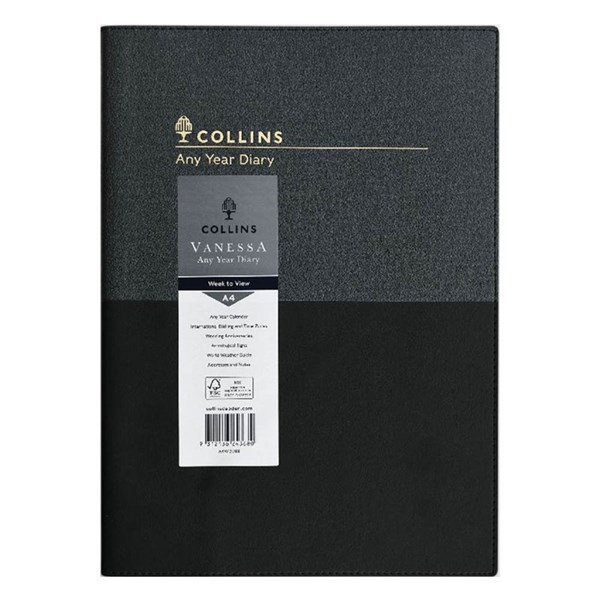 COLLINS VANESSA A4W.2U99 ANY YEAR DIARY A4 WEEK TO VIEW PU 2-TONE BLACK