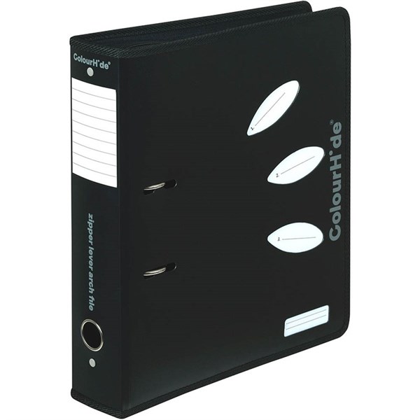 COLOURHIDE ZIPPER LEVER ARCH FILE 70MM A4 BLACK