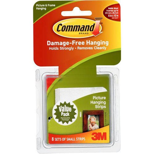 COMMAND PICTURE HANGING STRIP SMALL WHITE VALUE PACK 8 PAIRS