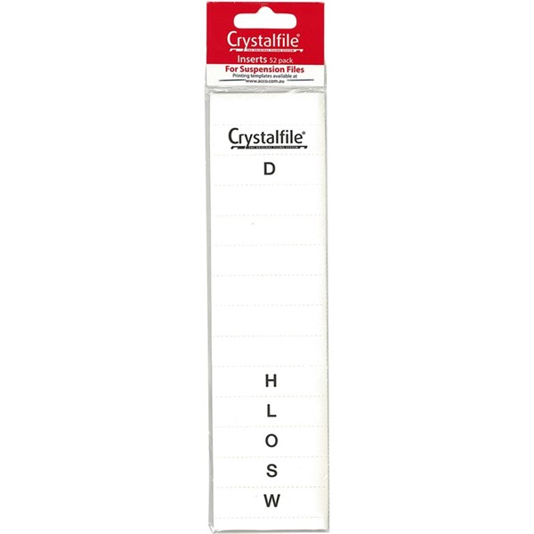 CRYSTALFILE INDICATOR TAB INSERTS A-Z WHITE PACK 52