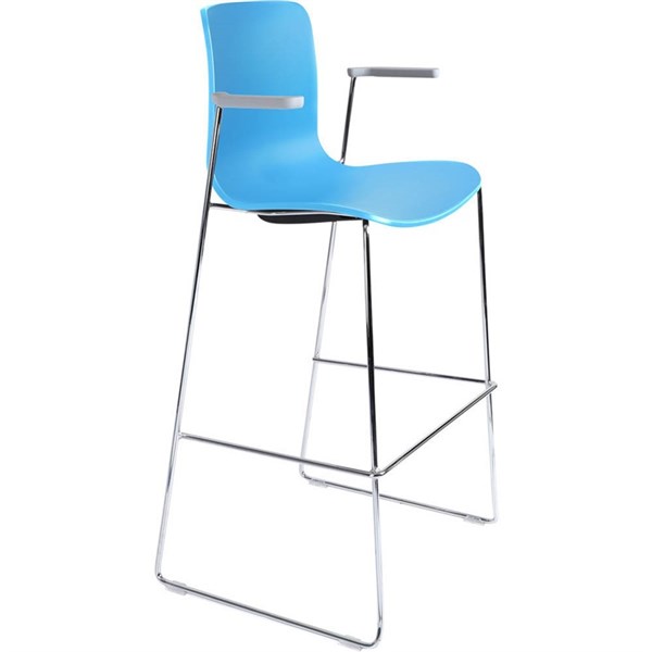 DAL ACTI BAR STOOL SLED BASE HIGH 760MM ARMS LIGHT GREY ARM-PADS AND CHROME FRAME OCEAN BLUE POLYPROP SHELL