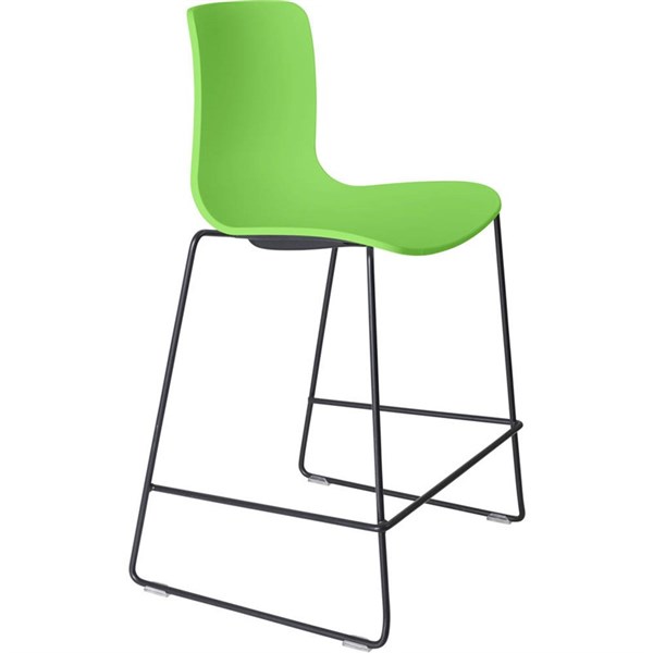 DAL ACTI BAR STOOL SLED BASE LOW 630MM BLACK POWDERCOAT FRAME GREEN POLYPROP SHELL