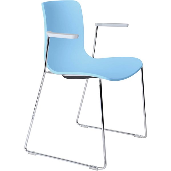 DAL ACTI CHAIR SLED BASE ARMS LIGHT GREY ARM-PADS AND CHROME FRAME PALE BLUE POLYPROP SHELL