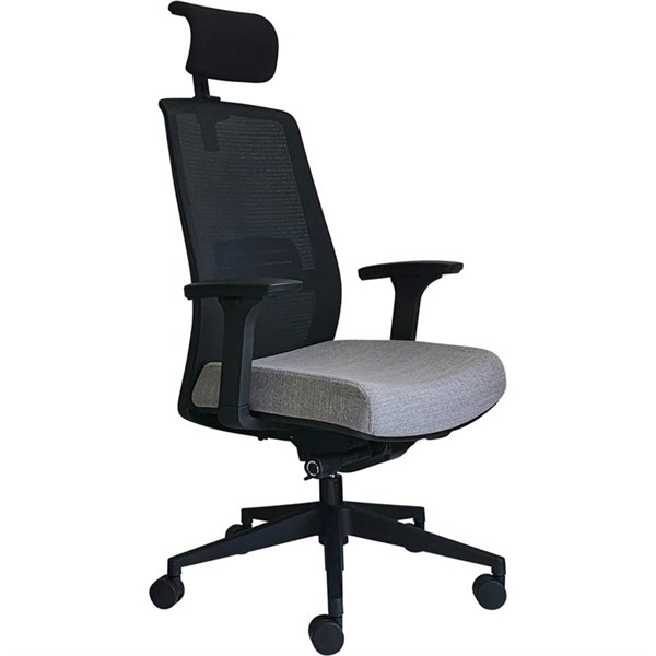 DAL JIRRA SIDE CONTROL SYNCHRO HIGH MESH BACK ARMS HEADREST BLACK BACK GREY SEAT