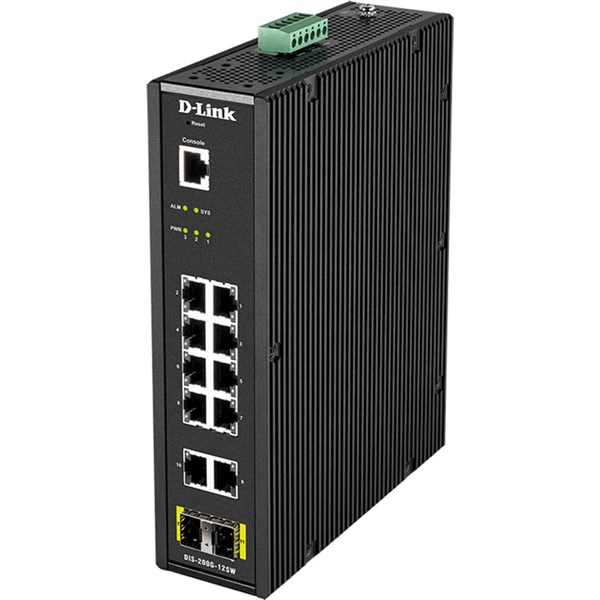 D-LINK DIS-200G-12SW 12-PORT GIGABIT INDUSTRIAL SMART MANAGED SWITCH WITH 10 1000BASE-T PORTS AND 2 SFP PORTS