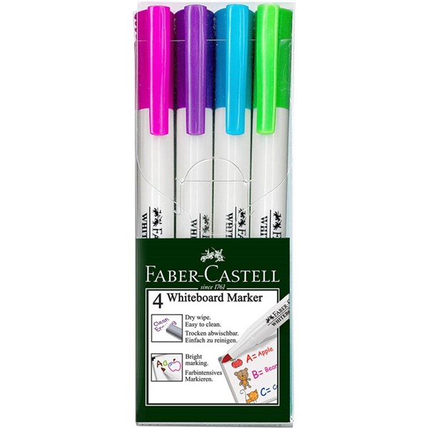 FABER-CASTELL WHITEBOARD MARKER BULLET SLIM ASSORTED FASHION COLOURS PACK 4