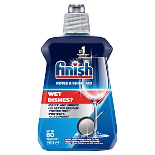 - Finish Rinse Aid has 5x POWER ACTIONS and a Glass Protection ingredient for shinier and drier dishes