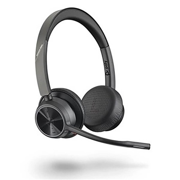 The Poly Voyager 4320 USB-C Headset with BT700 Dongle is a professional wireless headset designed for clear communication and all-day comfort