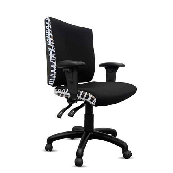 This chair with arms features a high-quality and soft-to-the touch padded back and seat, which makes working at the of?ce or home a pleasure - This solid and wide heavy-duty chair is ideal for education spaces, universities, or any of?ce areas with indigenous fabric and black commerical fabric upholstered