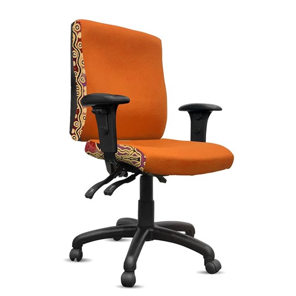 - A unique commercial fabrics designed by STEPHEN JUPURRURLA NELSON (Indigenous Artist) combined with K2 Fabric to upholster the chair