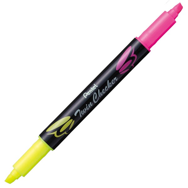 PENTEL SLW8 TWIN CHECKER HIGHLIGHTER TWIN TIP CHISEL YELLOW/PINK