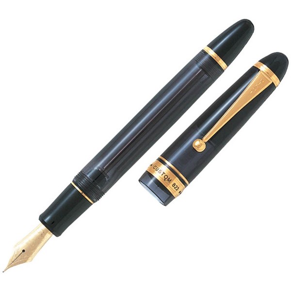 PILOT CUSTOM 823 FOUNTAIN PEN BLACK BARREL FINE NIB BLACK INK