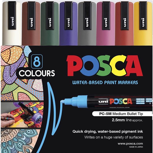 POSCA PC-5M PAINT MARKER BULLET MEDIUM 2.5MM ASSORTED DARK COLOURS PACK 8