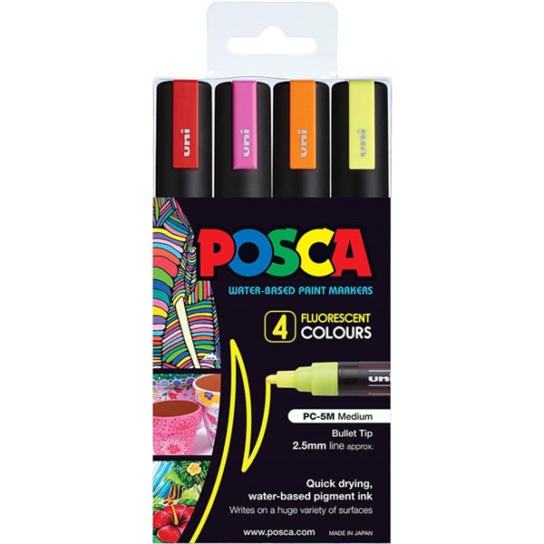POSCA PC-5M PAINT MARKER BULLET MEDIUM 2.5MMM ASSORTED FLUORO PACK 4