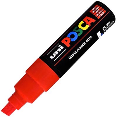 - POSCA PC-8K broad chisel tip draws neat curves and covers large surfaces in a large range of colours