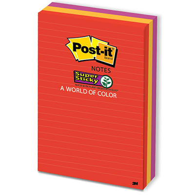 Post-it super sticky notes stick practically anywhere, revolutionary adhesive technology ensures your notes will stick securely to more surfaces. Now you can stick your notes where they will really get noticed...like monitors, doors and walls - 101 mm x 152 mm, Marrakesh collection, lined