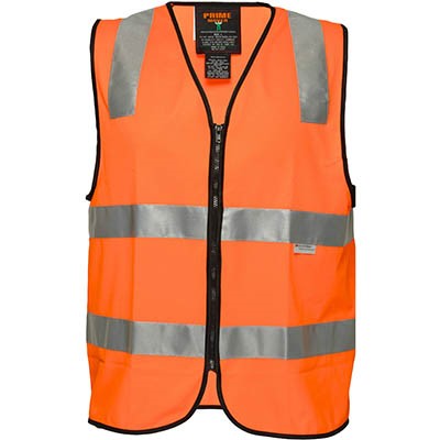 PRIME MOVER MZ102 HI-VIS VEST ZIPPER CLOSURE REFLECTIVE TAPE ORANGE LARGE