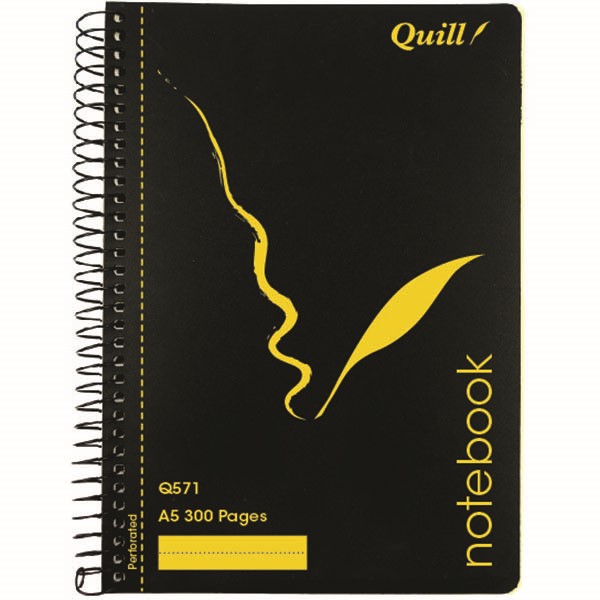QUILL NOTEBOOK 70GSM PP 300 PAGE A5 BLACK