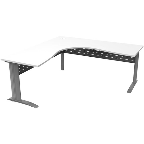 RAPID SPAN DELUXE CORNER WORKSTATION WITH METAL MODESTY PANEL 1500 X 1500 X 750MM WHITE/SILVER
