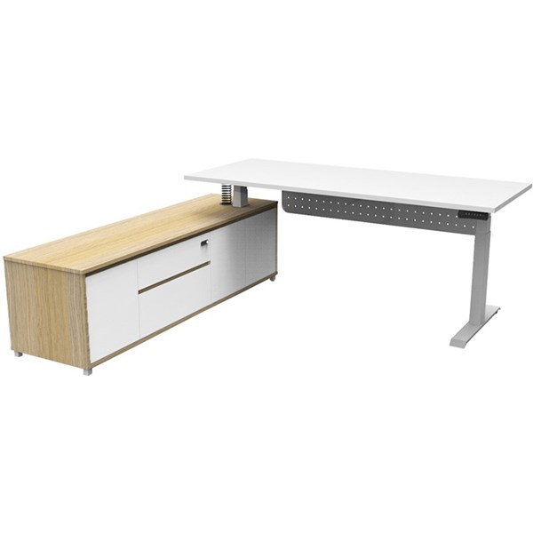 RAPIDLINE BOOST PLUS EXECUTIVE HEIGHT ADJUSTABLE WORKSTATION WITH MODESTY PANEL LHC 1800 X 900MM NATURAL WHITE/WHITE