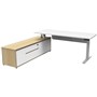 - The integrated side cabinet provides convenient storage with drawers and cupboards, enhancing workspace organisation and efficiency
