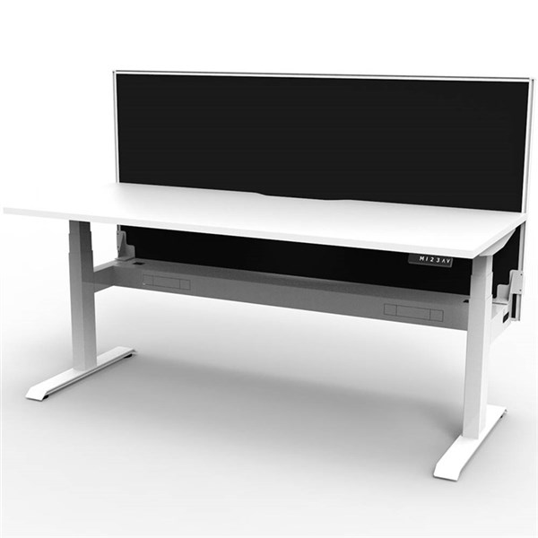 RAPIDLINE BOOST PLUS HEIGHT ADJUSTABLE SINGLE SIDED WORKSTATION WITH SCREEN / CABLE TRAY 1200 X 750MM NATURAL WHITE TOP / WHITE FRAME / BLACK SCREEN