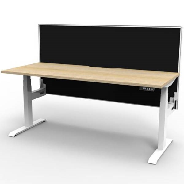 RAPIDLINE BOOST PLUS HEIGHT ADJUSTABLE SINGLE SIDED WORKSTATION WITH SCREEN 1200 X 750MM NATURAL OAK TOP / WHITE FRAME / BLACK SCREEN