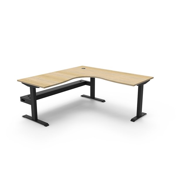 RAPIDLINE BOOST STATIC CORNER WORKSTATION WITH CABLE TRAY 1500 X 1500MM NATURAL OAK TOP / BLACK FRAME