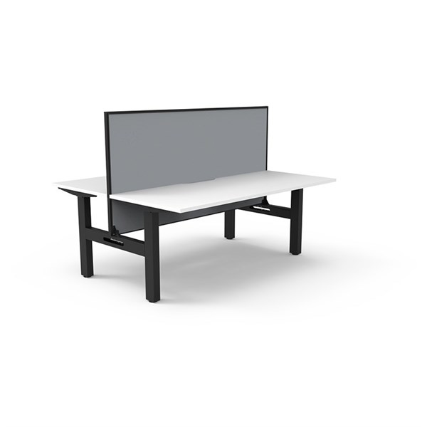 RAPIDLINE BOOST STATIC DOUBLE SIDED WORKSTATION WITH SCREEN 1200MM NATURAL WHITE TOP / BLACK FRAME / GREY SCREEN