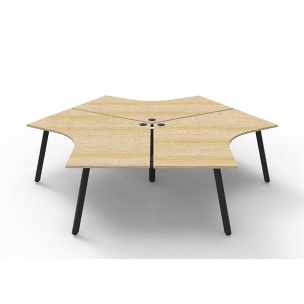RAPIDLINE DELUXE INFINITY 120 DEGREE WORKSTATION ETERNITY LEG 3 PERSON 2866W X 730MM NATURAL OAK TOP AND BLACK P/C FRAME