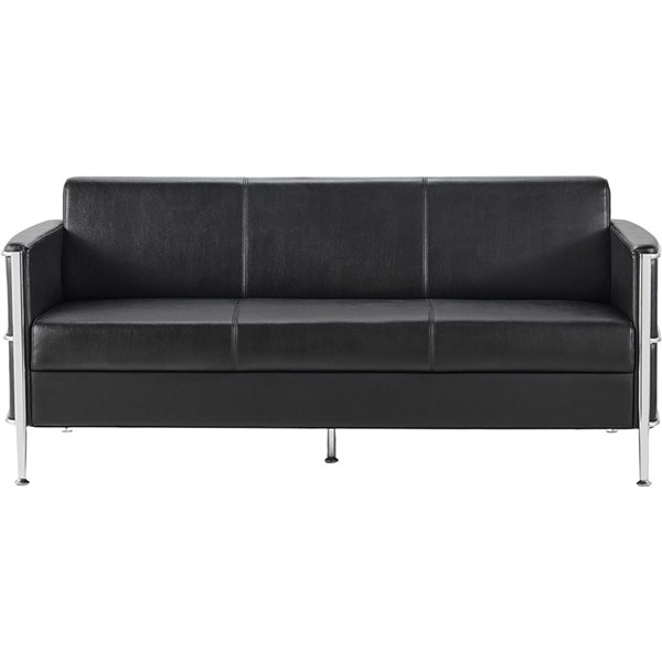 The Eclipse Lounge Range offers a contemporary seating solution with a chrome wrap-around frame and black PU leather upholstery - Designed for comfort and durability, it features adjustable feet for leveling on uneven surfaces and is tested to meet rigorous safety standards