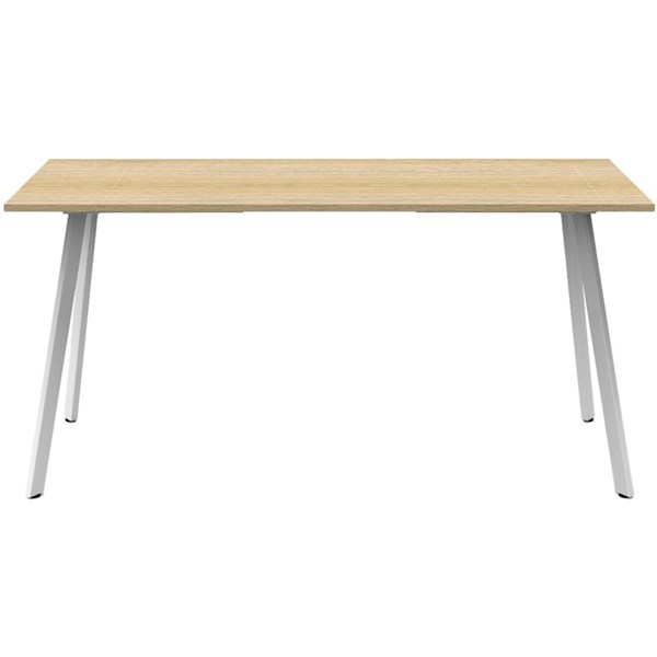 • The worksurface provides a warm and inviting aesthetic, while the powder-coated steel frame ensures durability and stability