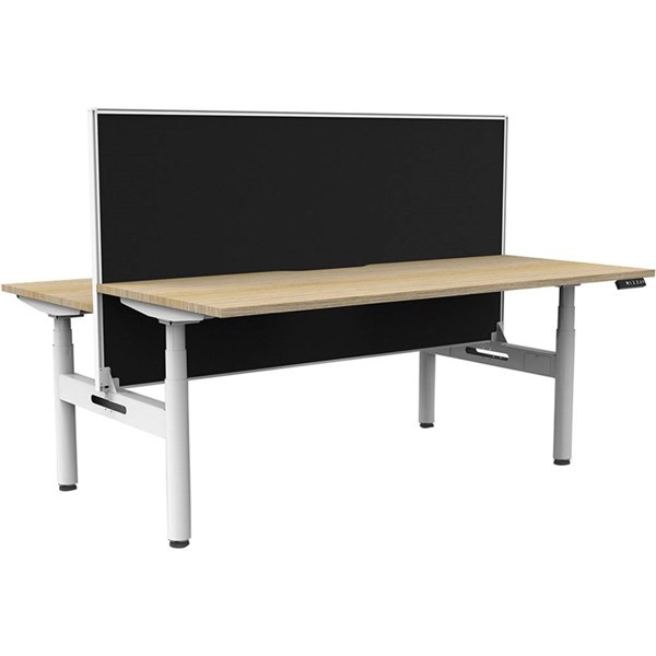 RAPIDLINE HALO PLUS DOUBLE SIDED WORKSTATION WITH SCREEN 1800MM NATURAL OAK TOP / WHITE FRAME / BLACK SCREEN