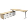 - The integrated side cabinet provides ample storage with drawers and cupboards, enhancing workspace organisation and keeping your essentials within easy reach