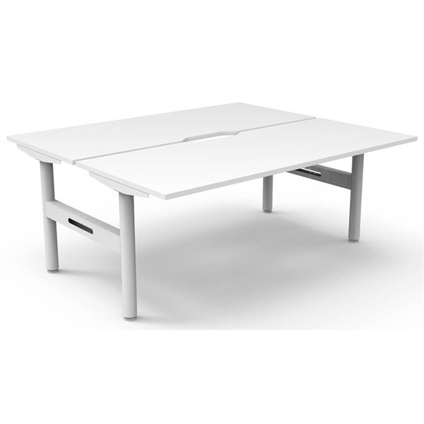 The Halo Static Back To Back Workstation provides a collaborative workspace for two users - It features a generous work surface with a scallop cut-out to the rear and a robust powder-coated frame