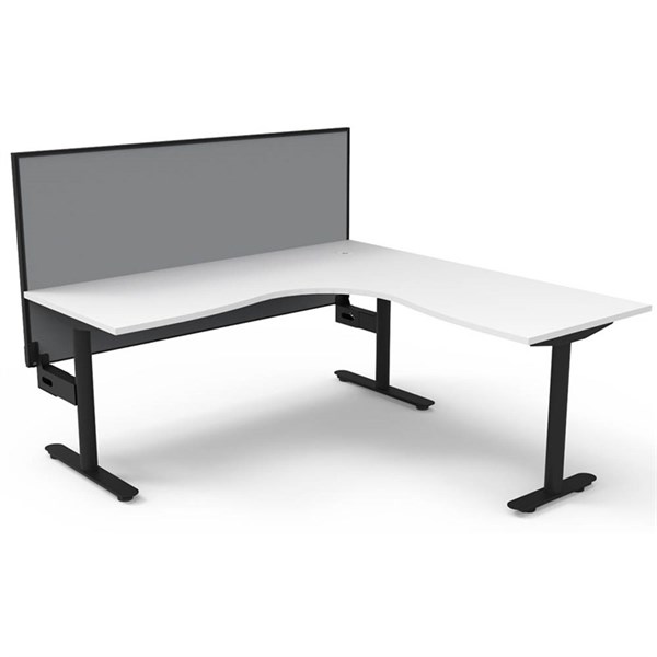 The Halo Static Corner Workstation offers a spacious and efficient workspace solution - The workstation features a robust frame with a 70mm diameter column and adjustable levelling feet, ensuring stability and ease of setup