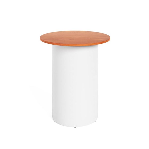 RAPIDLINE ROUND HIGH BAR TABLE DRUM BASE 900MM X 1050MM CHERRY TOP AND WHITE P/C FRAME