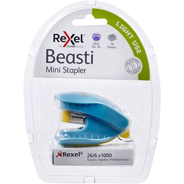 REXEL BEASTI MINI STAPLER BLUE/YELLOW