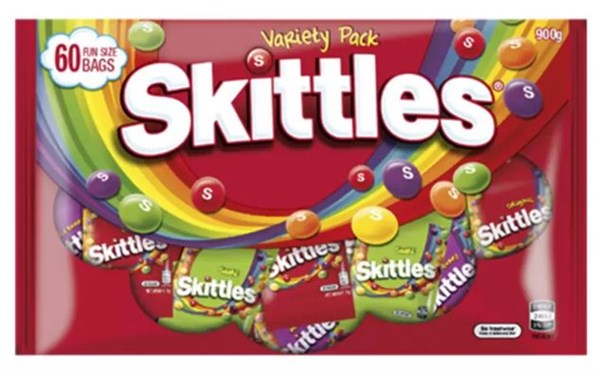• Taste the rainbow, one handy pouch at a time. This bulk bag holds 60 individually wrapped fun-size Skittles in an assorted mix of Original Fruit, Wild Berry and Sour, giving you the perfect grab-and-go stash for lunchboxes, office lolly jars, party favours or trick-or-treat bowls. Each pack is sealed to keep the chewy shells crisp and the fruit flavours bright, and the 900 g total weight means there?s plenty to share?if you can resist polishing them off yourself. Store cool and dry, away from direct sunlight.