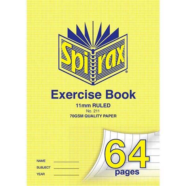 SPIRAX 211 EXERCISE BOOK 11MM RULED 70GSM 64 PAGE A4