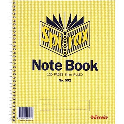 SPIRAX 592 NOTEBOOK SPIRAL BOUND 8MM RULED 120 PAGE 222 X 178MM