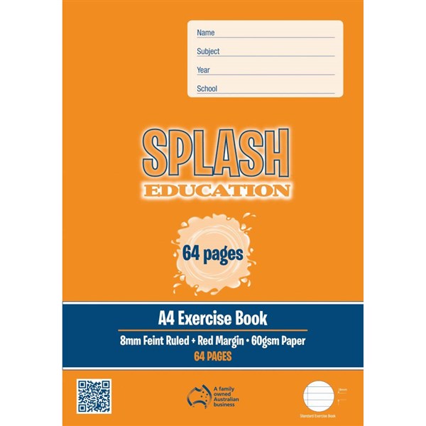 SPLASH EXERCISE BOOK 8MM RULED 60GSM 64 PAGE A4
