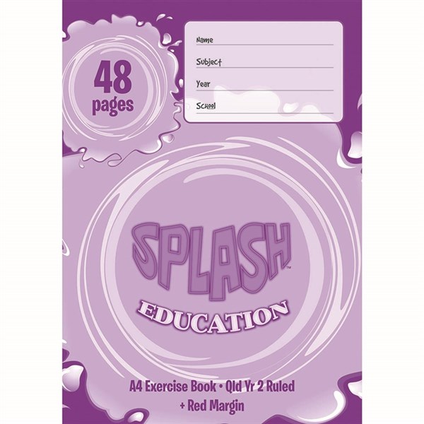 SPLASH EXERCISE BOOK QLD RULED YEAR 2 18MM 60GSM 48 PAGE A4