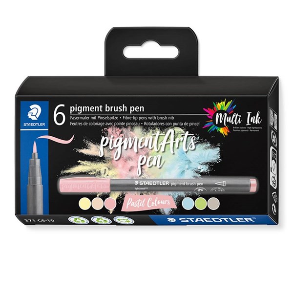 STAEDTLER PIGMENT BRUSH PEN 371 PASTEL COLOURS PACK 6